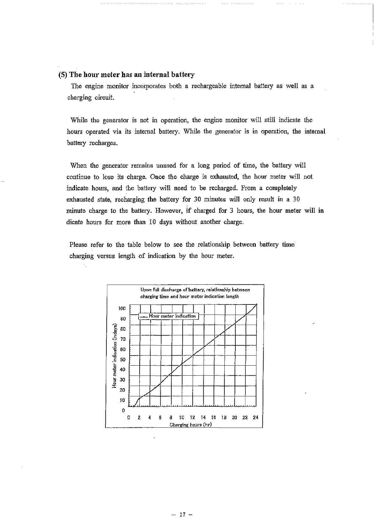 minute charge to the battery. However, if charged for 3 hours, the hour meter will in