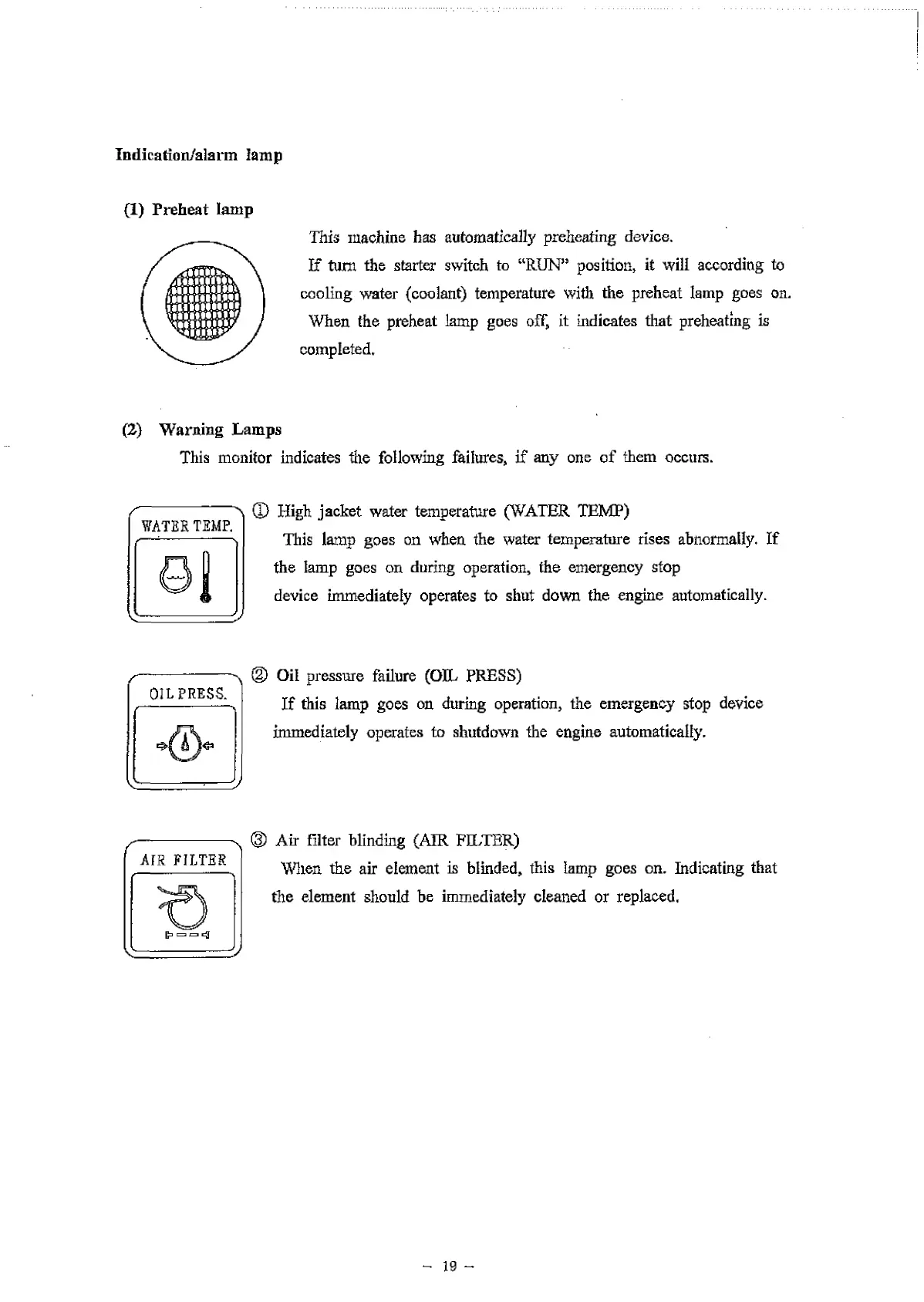 cooling water (coolant) temperature with the preheat lamp goes on.