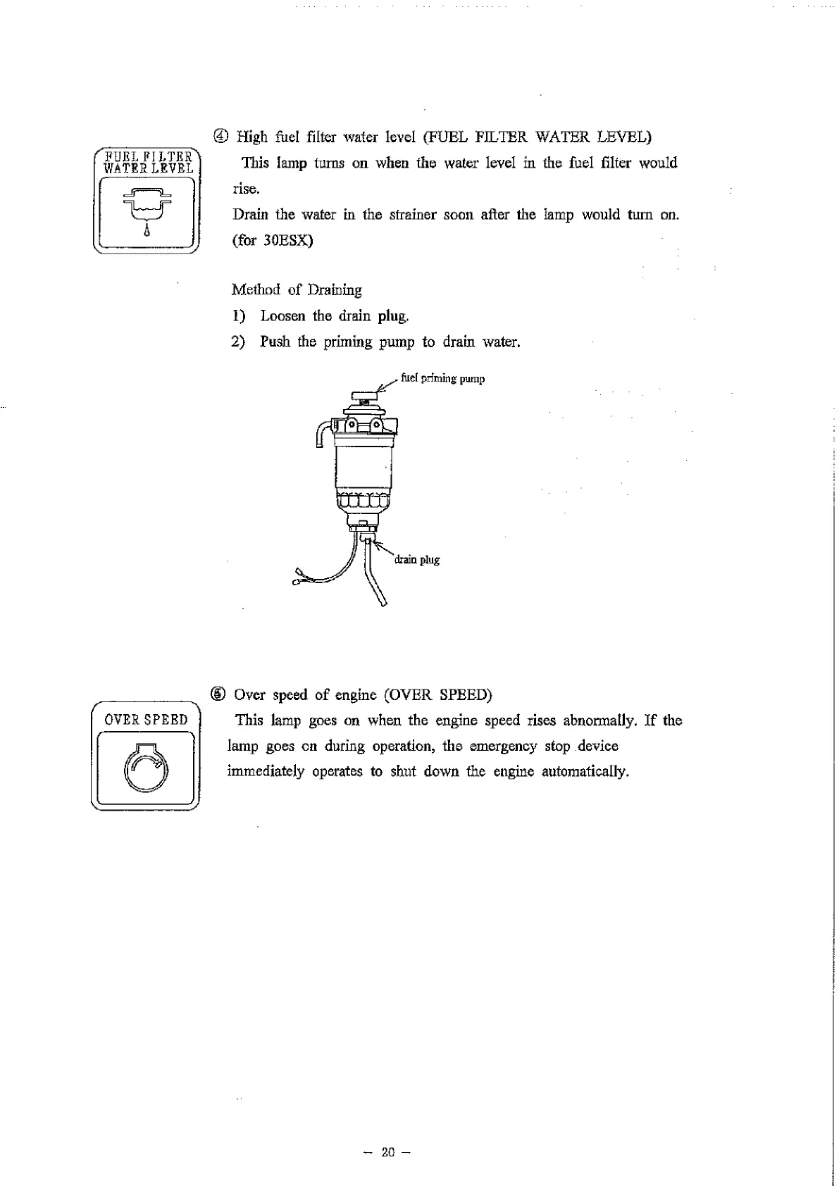 This lamp turns on when the water level in the fuel filter would