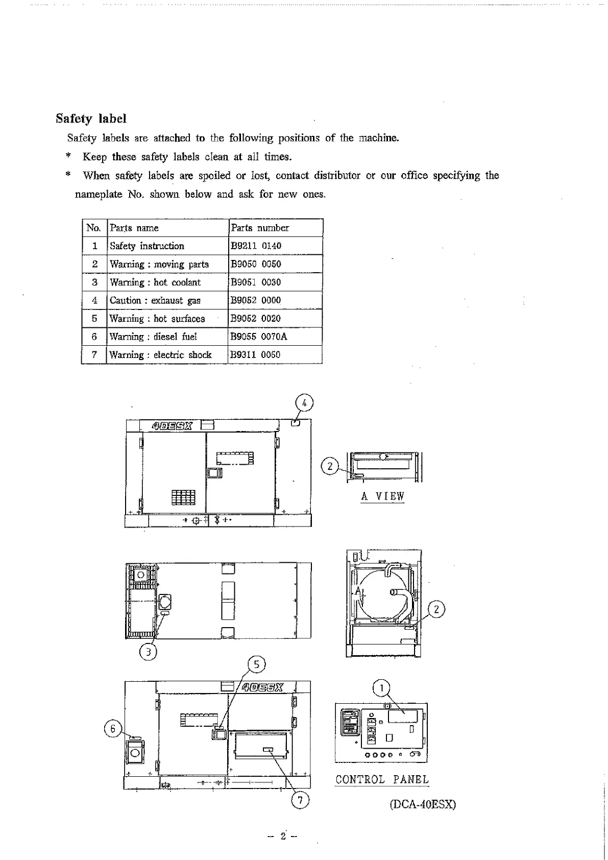 * When safety labels are spoiled or lost, contact distributor or our office specifying the