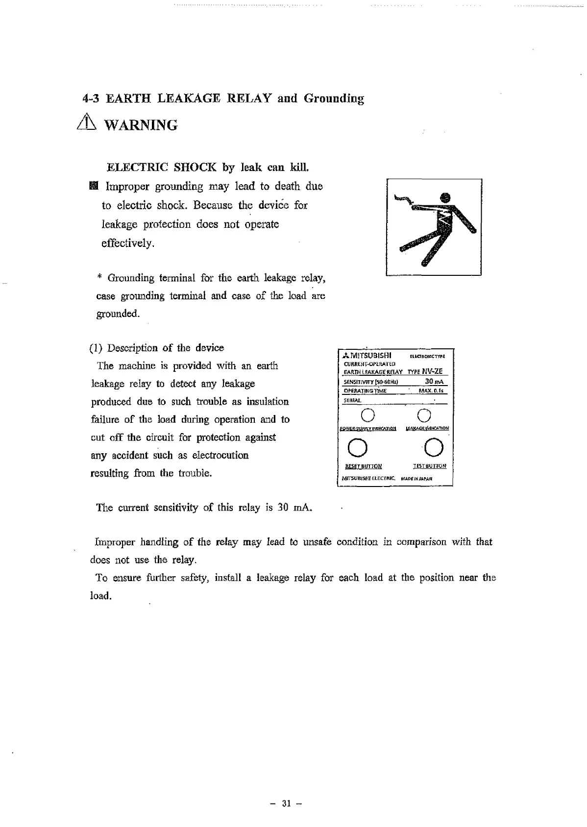 4-3 EARTH LEAKAGE RELAY and Grounding