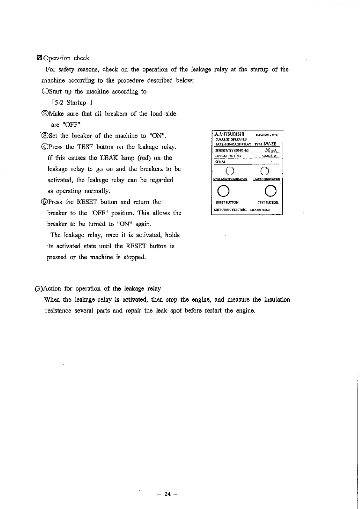 (3)Action for operation of the leakage relay