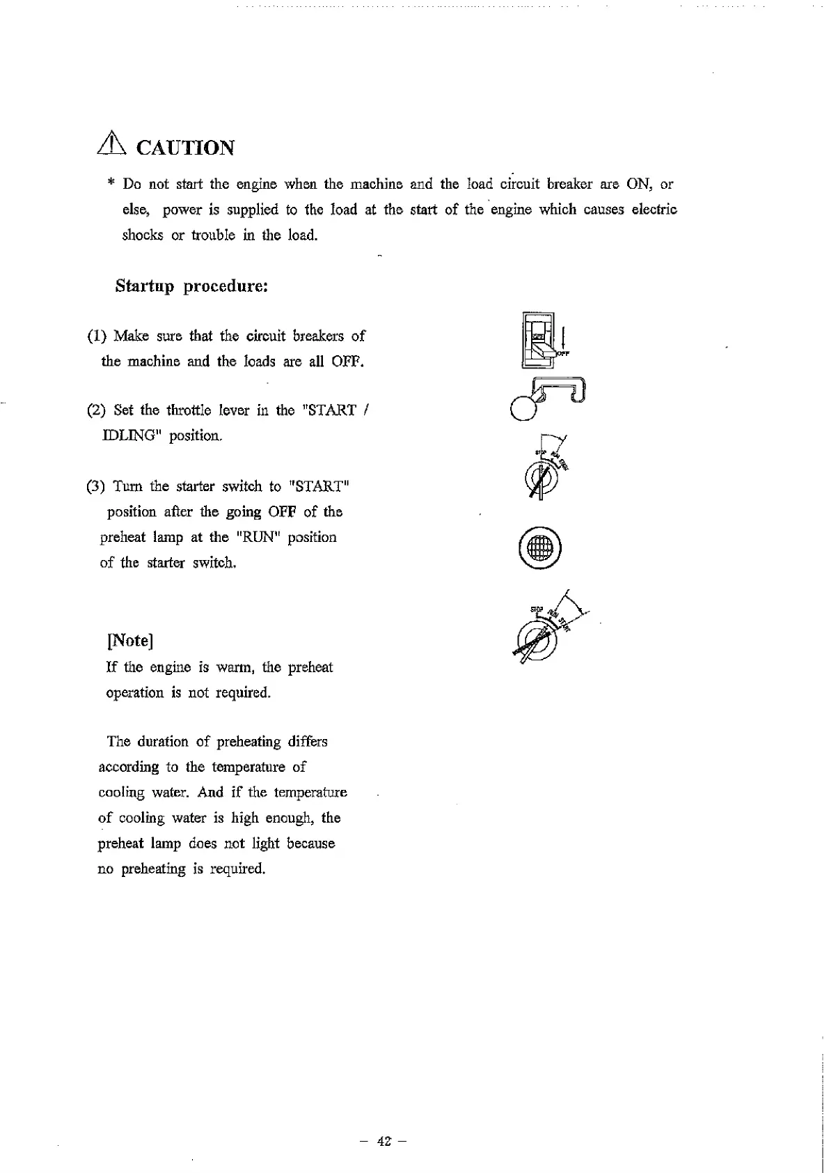 * Do not start the engine when the machine and the load circuit breaker are ON, or