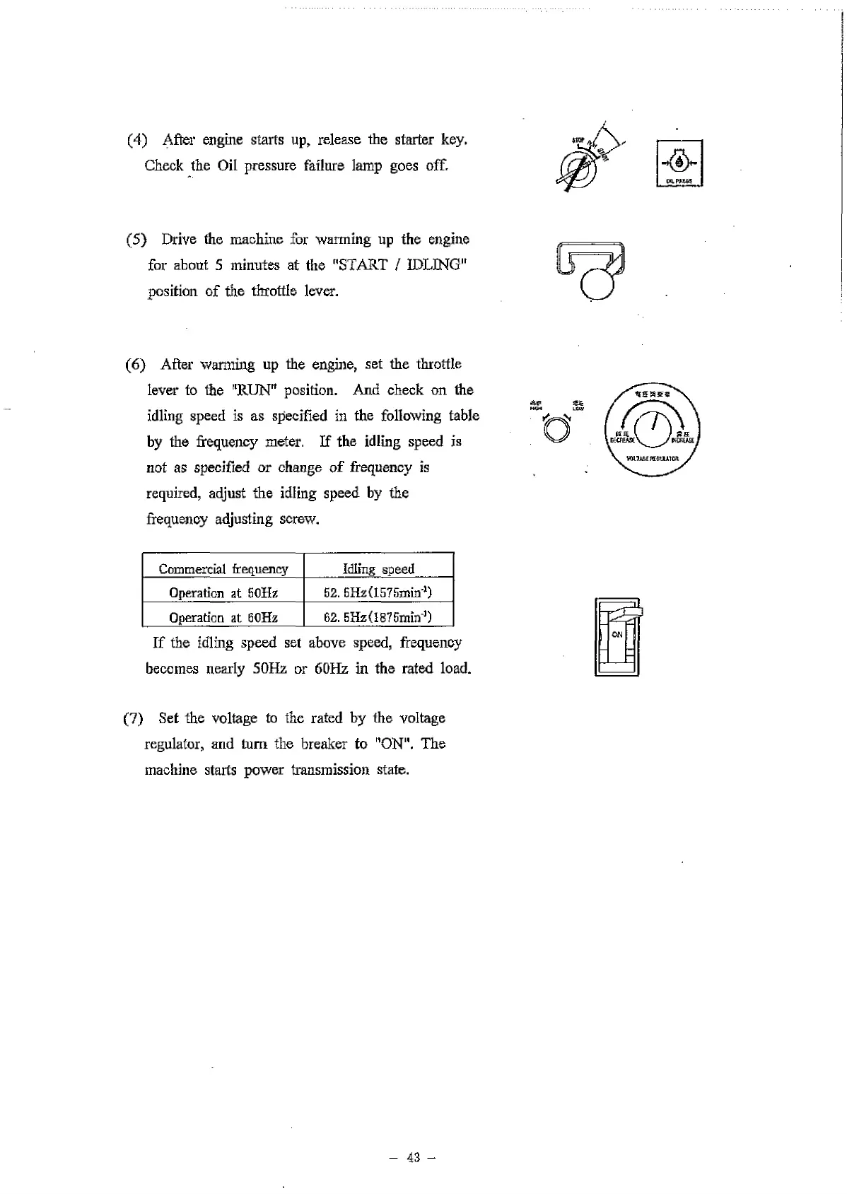 by the frequency meter. If the idling speed is