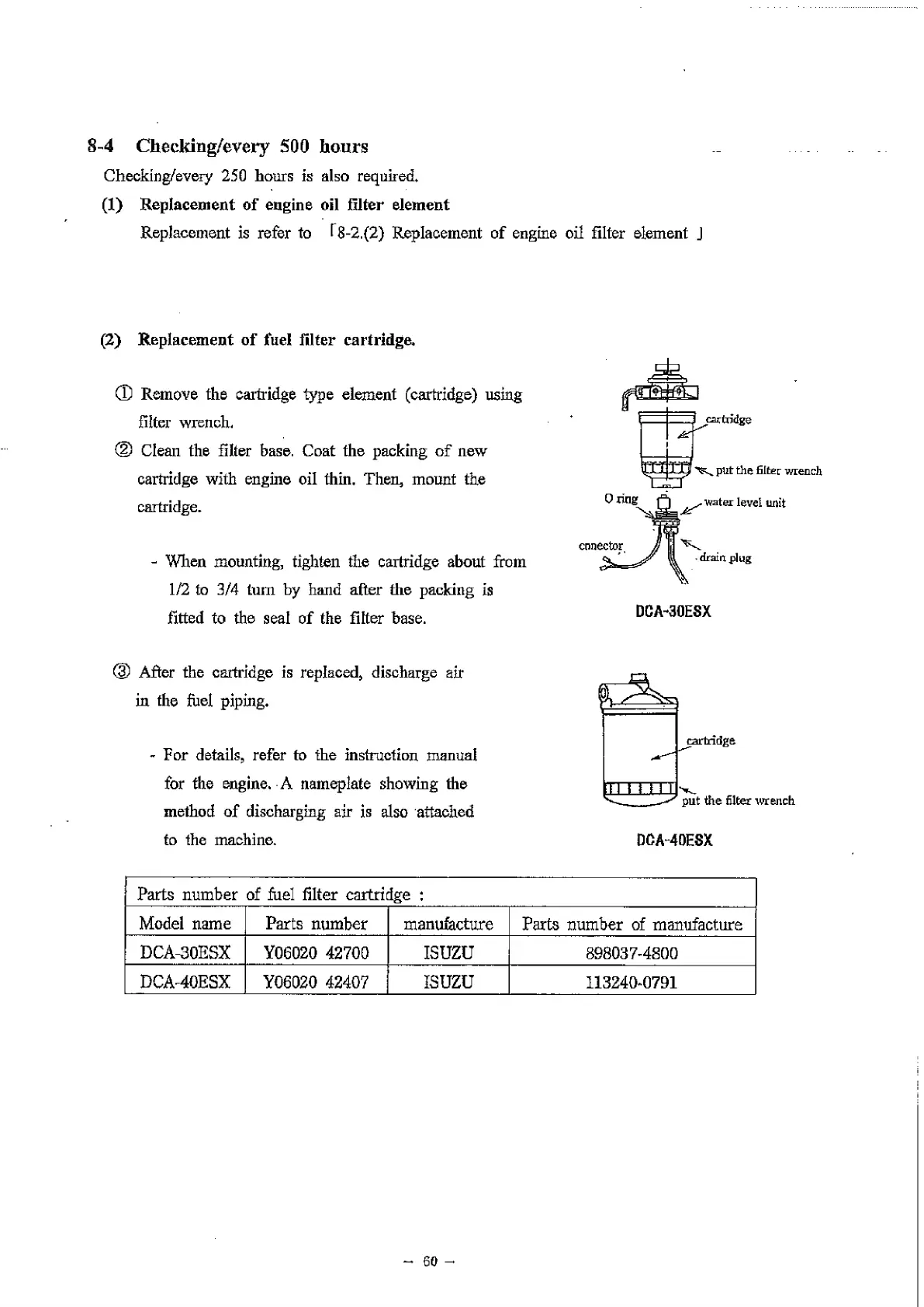 (2) Replacement of fuel filter cartridge,