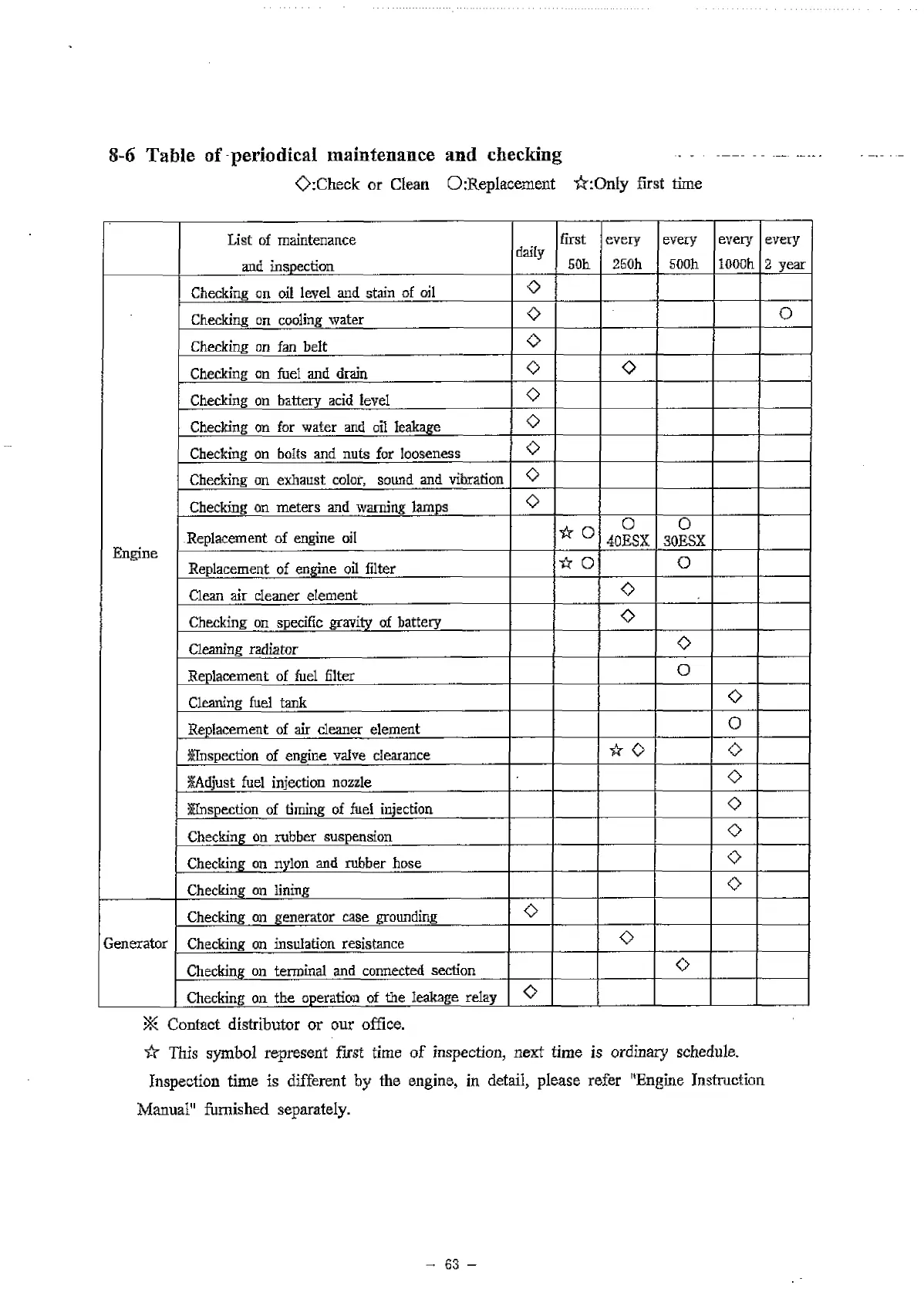 Inspection time is different by the engine, in detail, please refer "Engine Instruction
