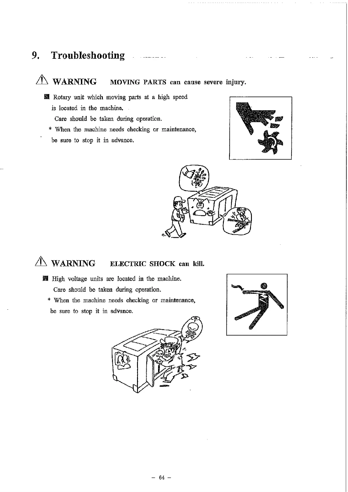 I High voltage units are located in the machine.