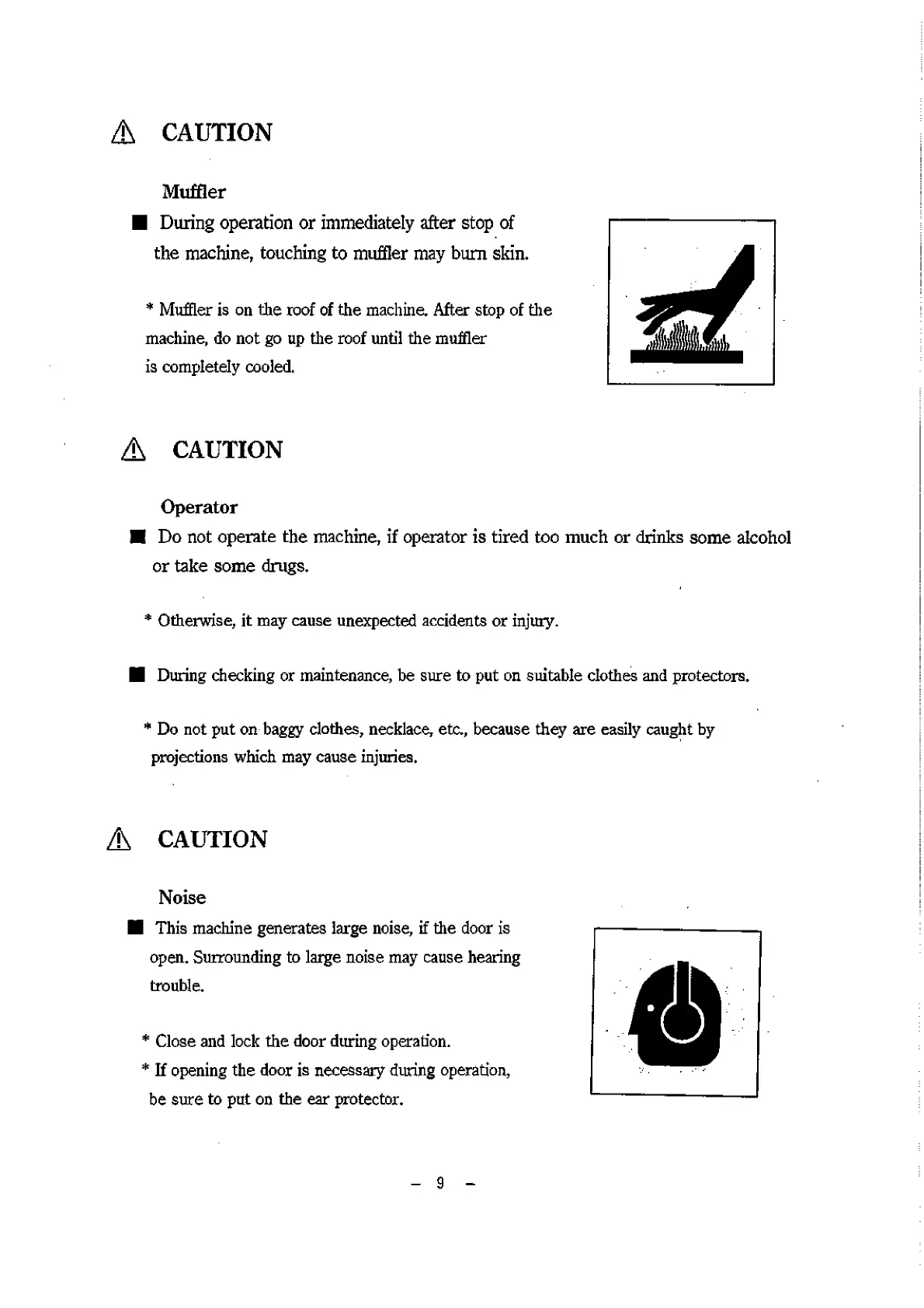 ■ Do not operate the machine, if operator is tired too much or drinks some alcohol