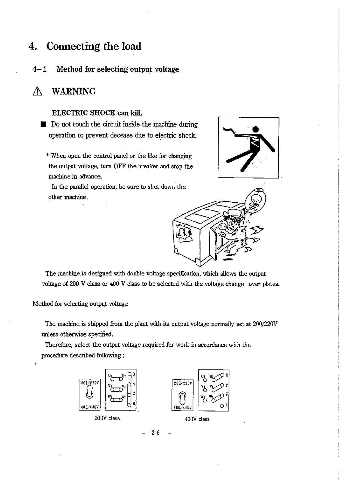 The machine is shipped from the plant with its output voltage normally set at 20G/220V