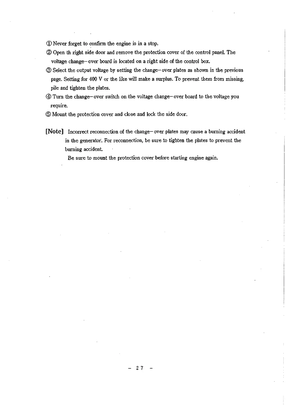 in the generator. For reconnection, be sure to tighten the plates to prevent the