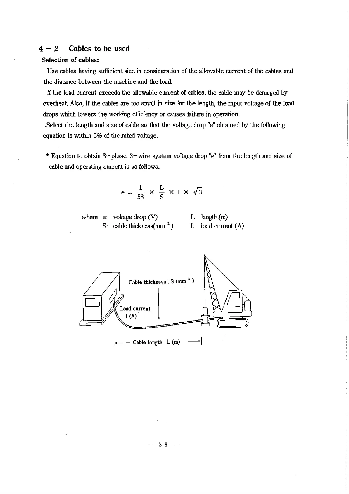 * Equation to obtain 3 - phase, 3-wire system voltage drop V from the length and size of
