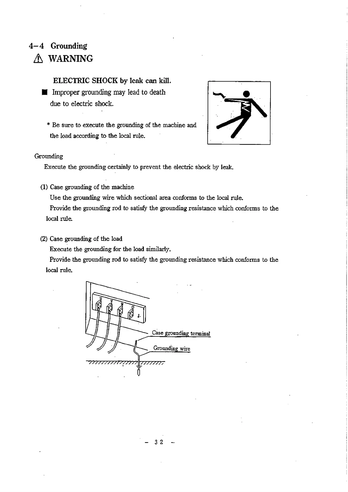 (1) Case grounding of the machine