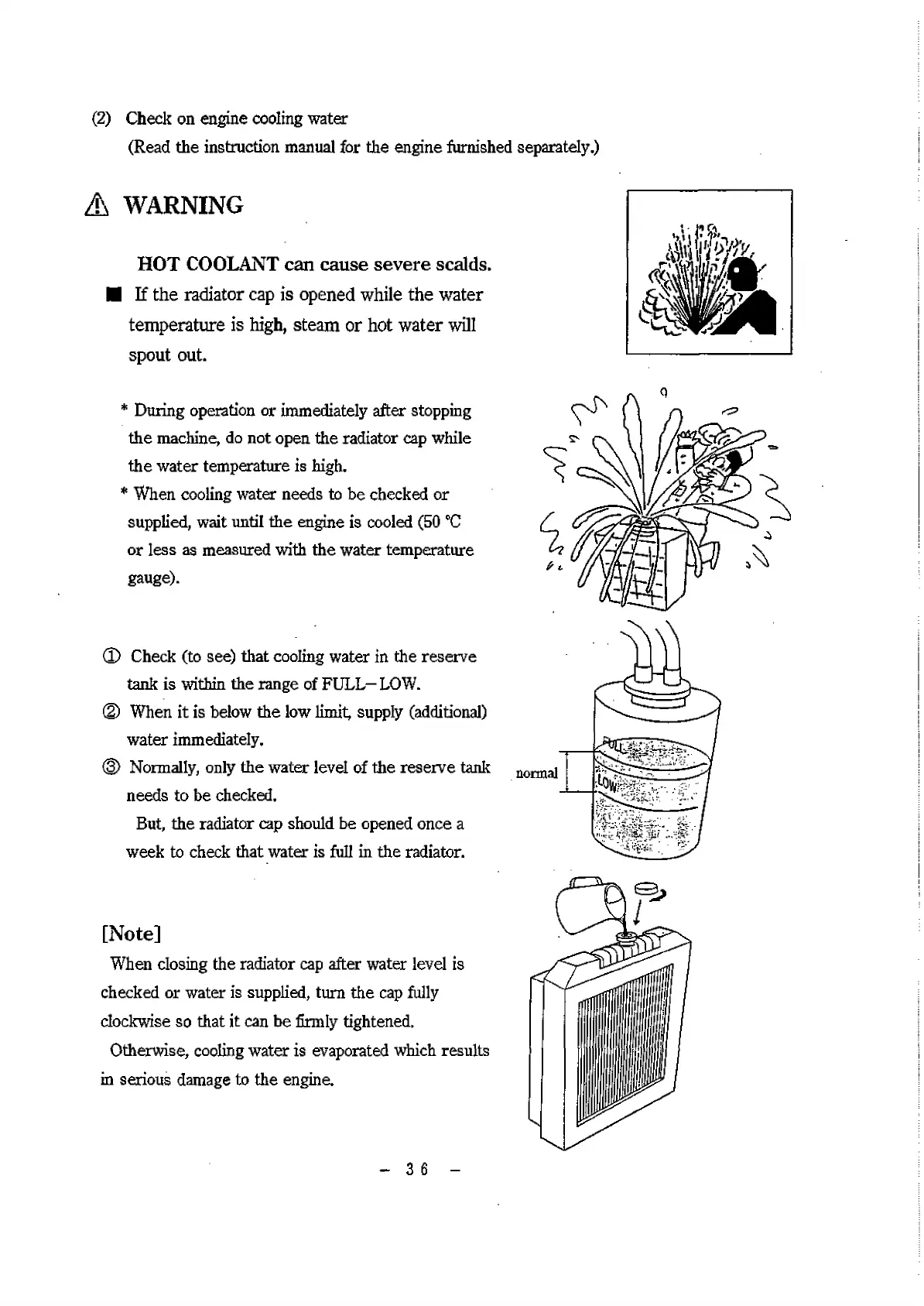 (2) Check on engine cooling water