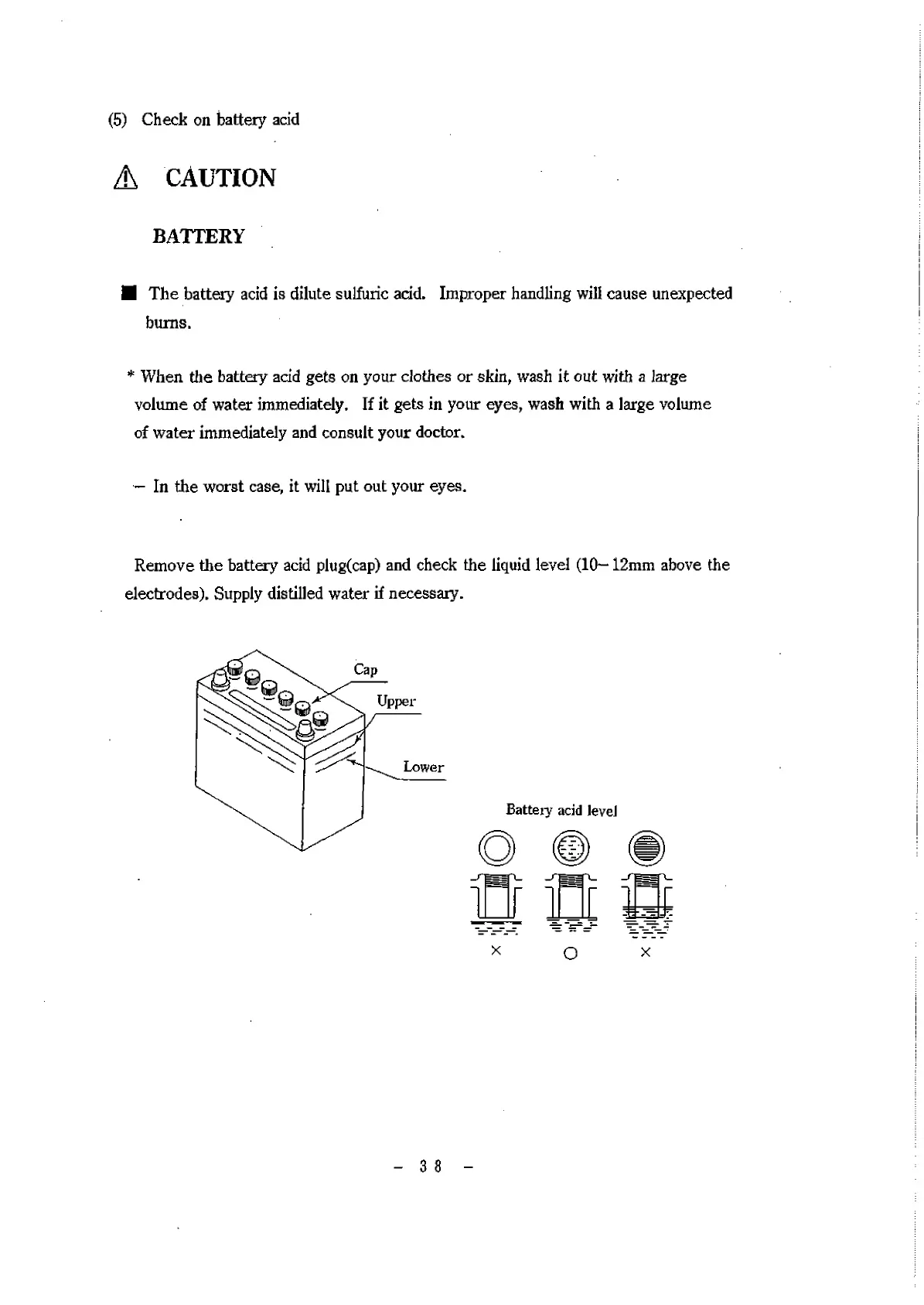 (5) Check on battery acid