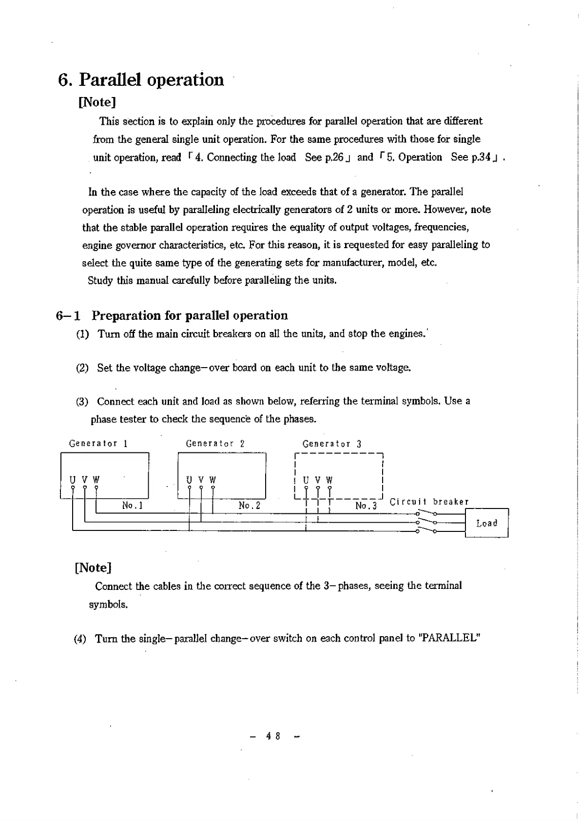 operation is useful by paralleling electrically generators of 2 units or more. However, note