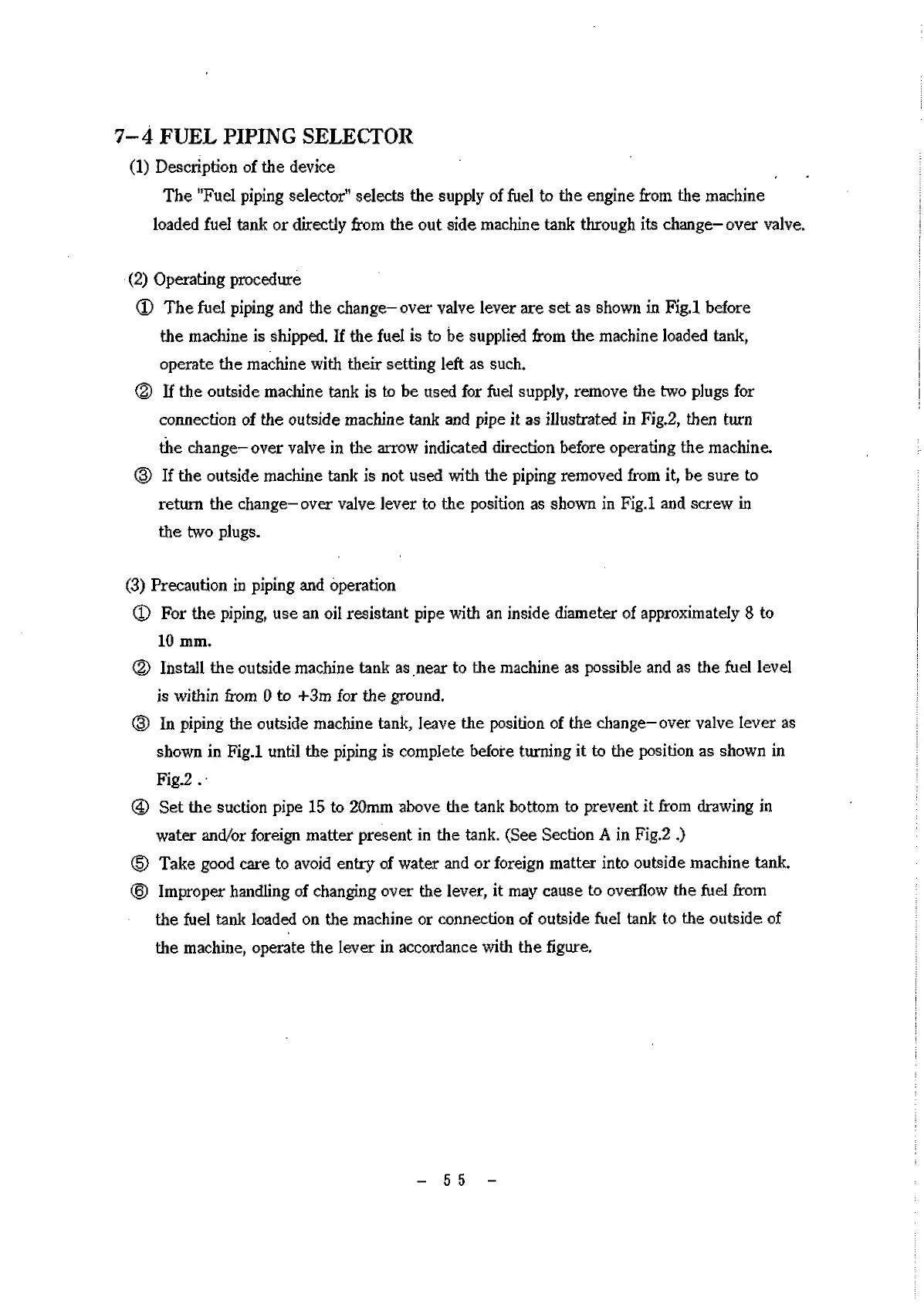 (D The fuel piping and the change-over valve lever are set as shown in Fig.l before