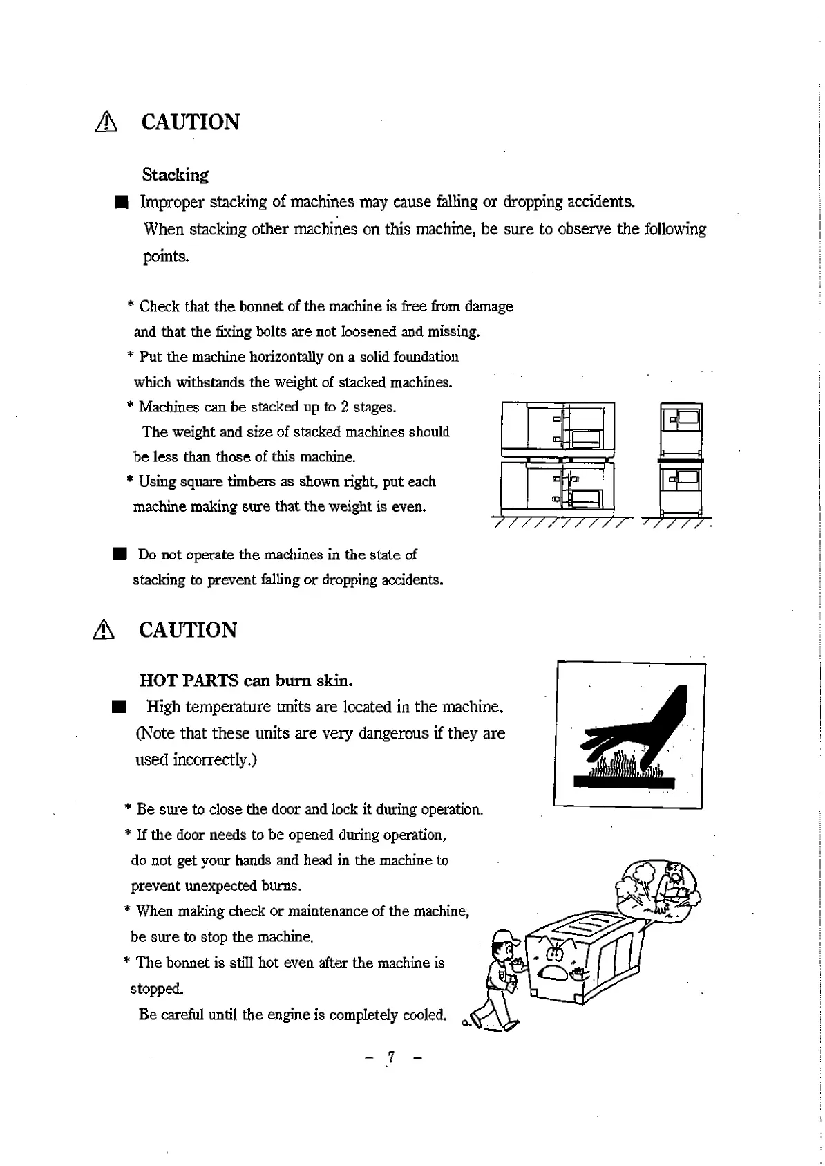Improper stacking of machines may cause falling or dropping accidents.