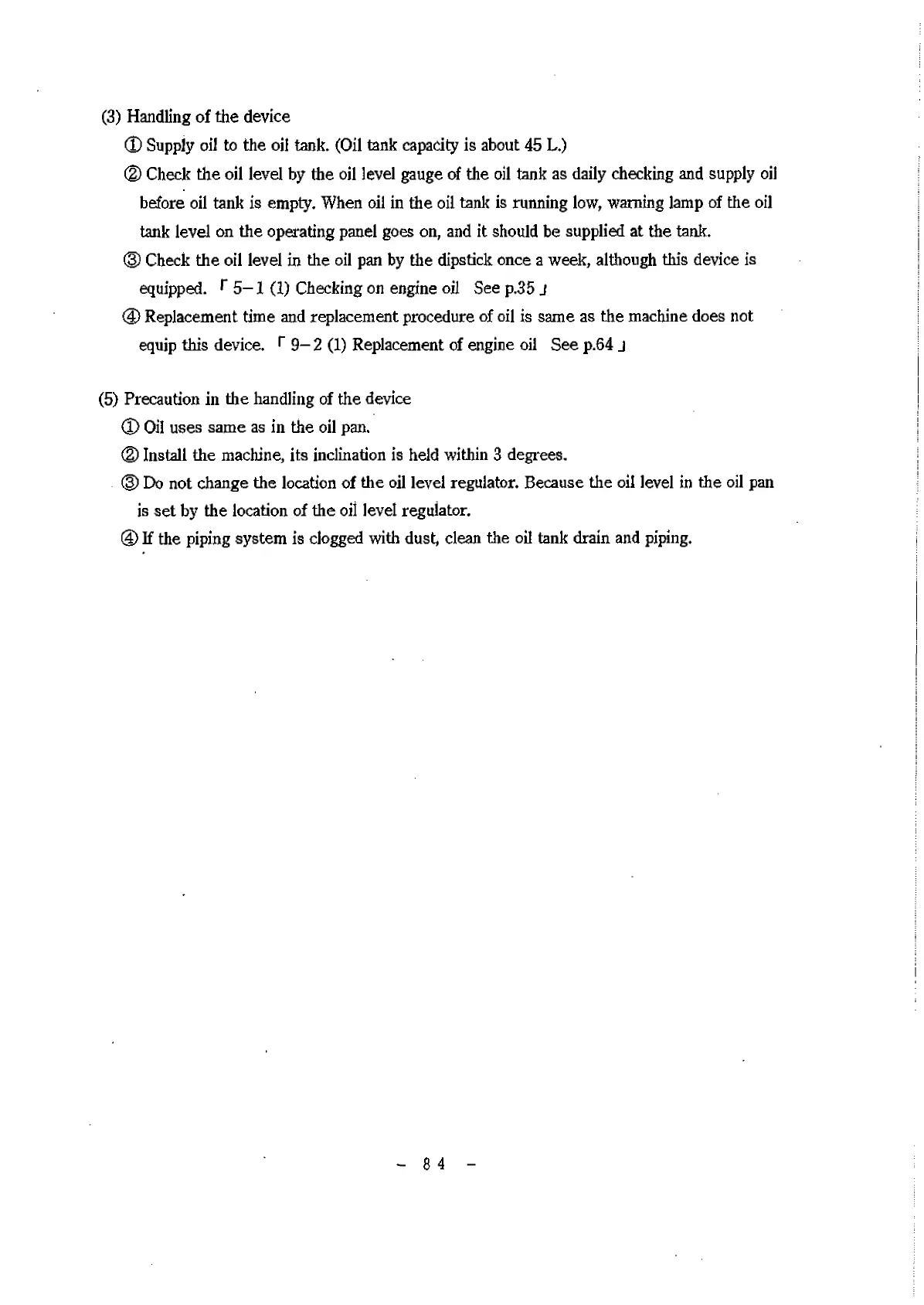 (D Supply oil to the oil tank. (Oil tank capacity is about 45 L.)
