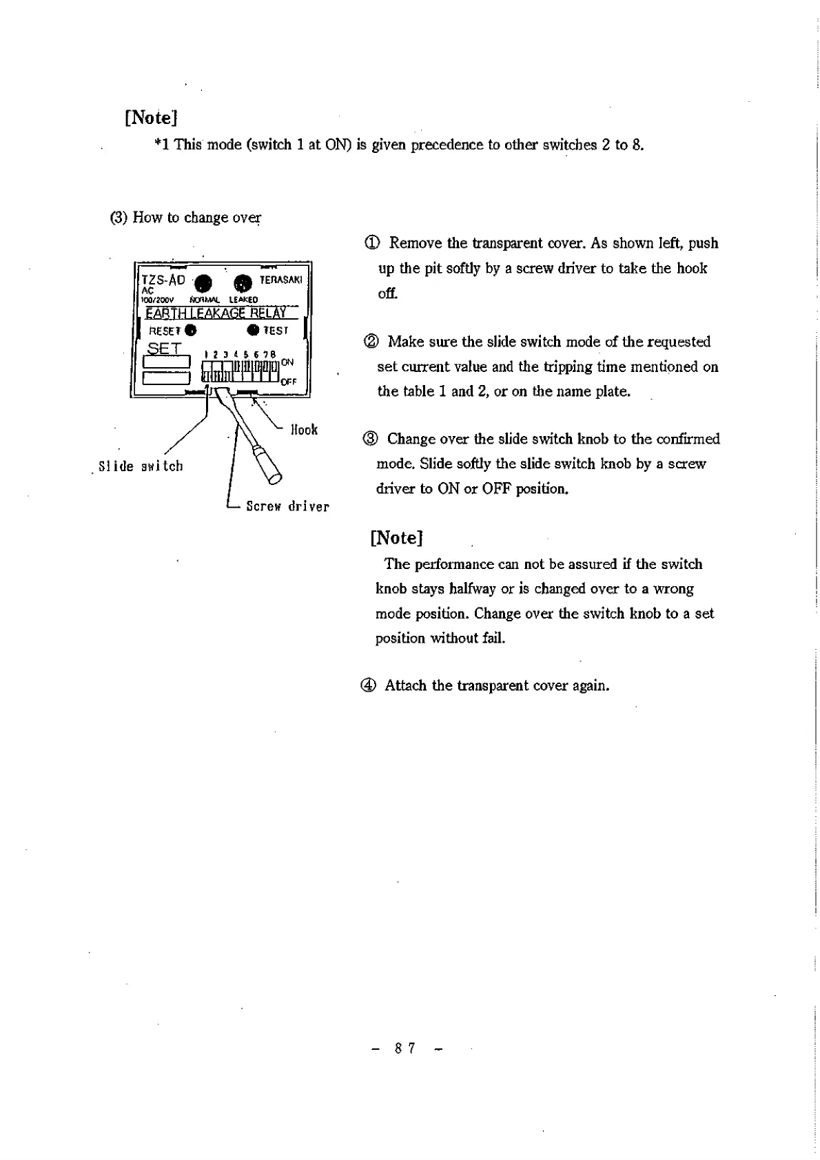 *1 This mode (switch 1 at ON) is given precedence to other switches 2 to 8.
