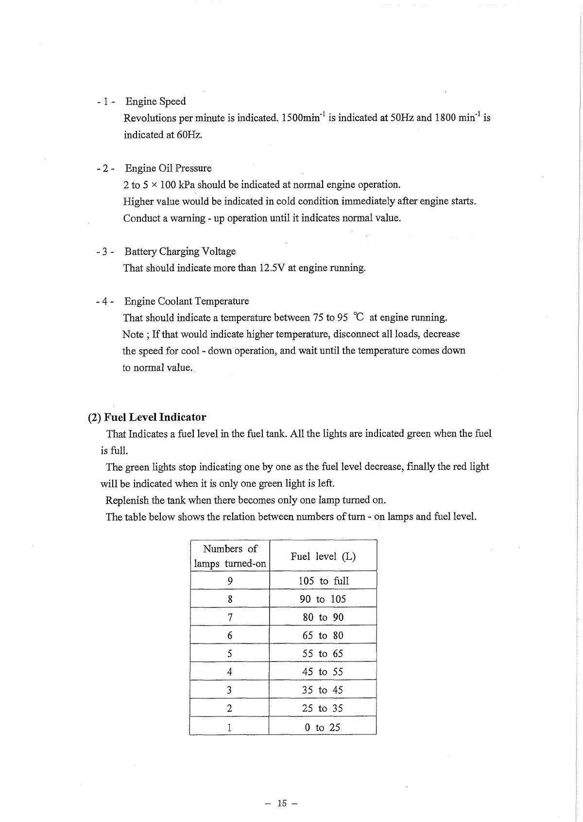 The table below shows the relation between numbers of turn - on lamps and fuel level.