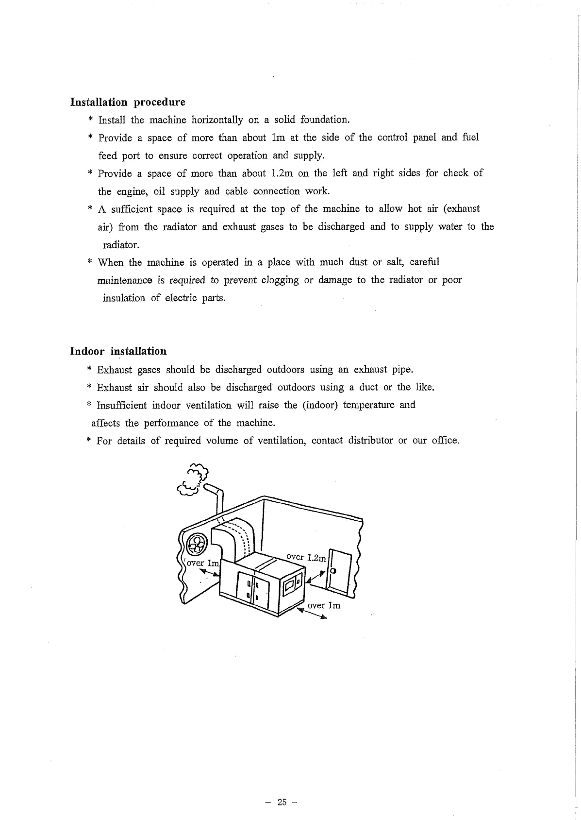 * Provide a space of more than about lm at the side of the control panel and fuel