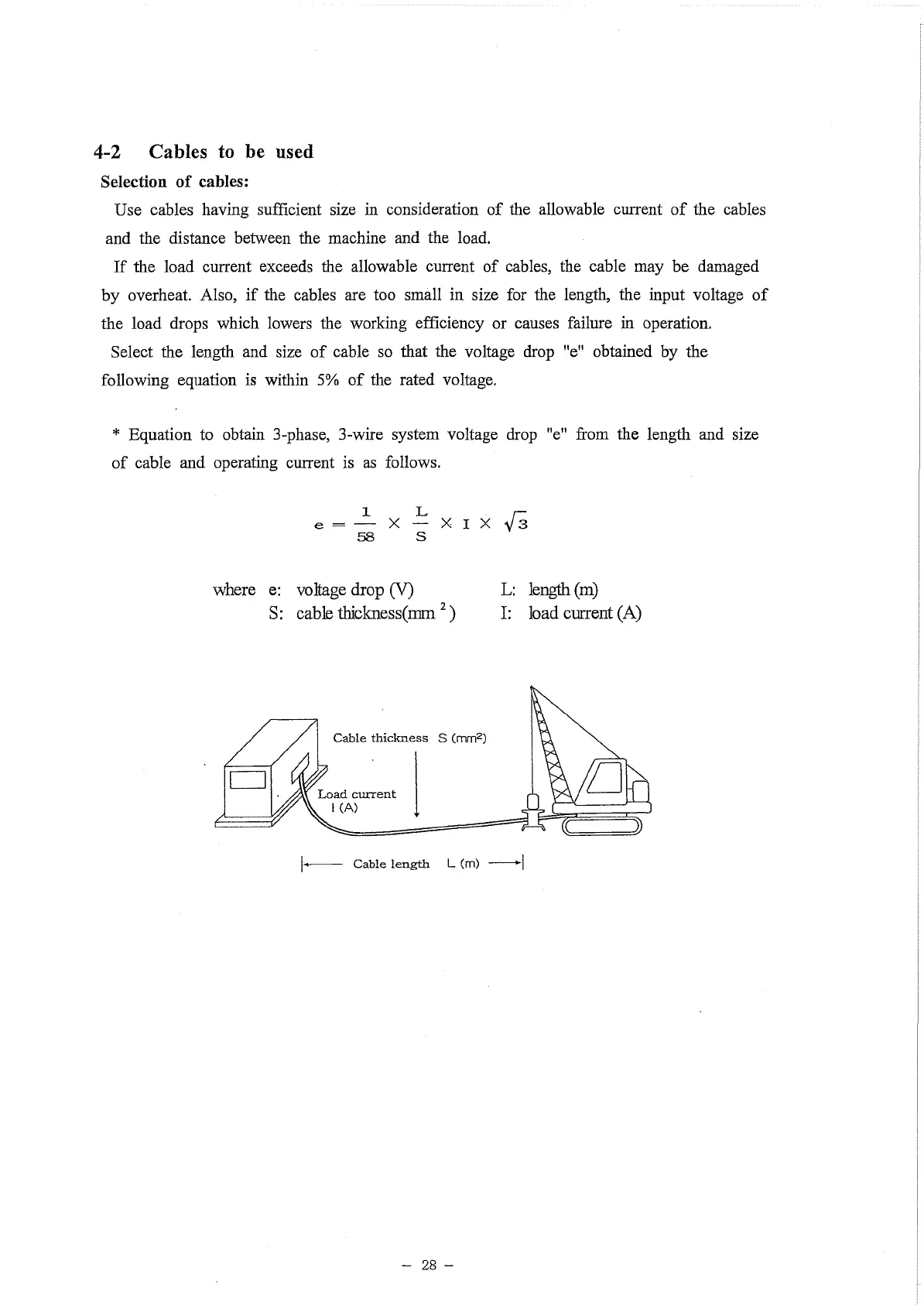 where e: voltage drop (V) L: length (m)