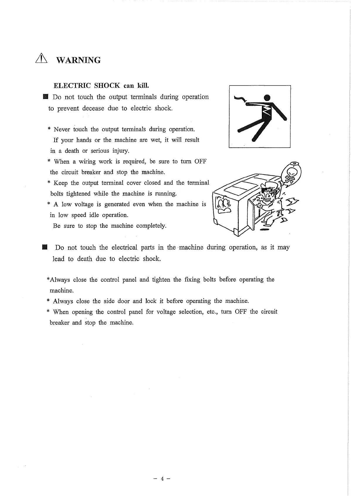 ■ Do not touch the electrical parts in the machine during operation, as it may