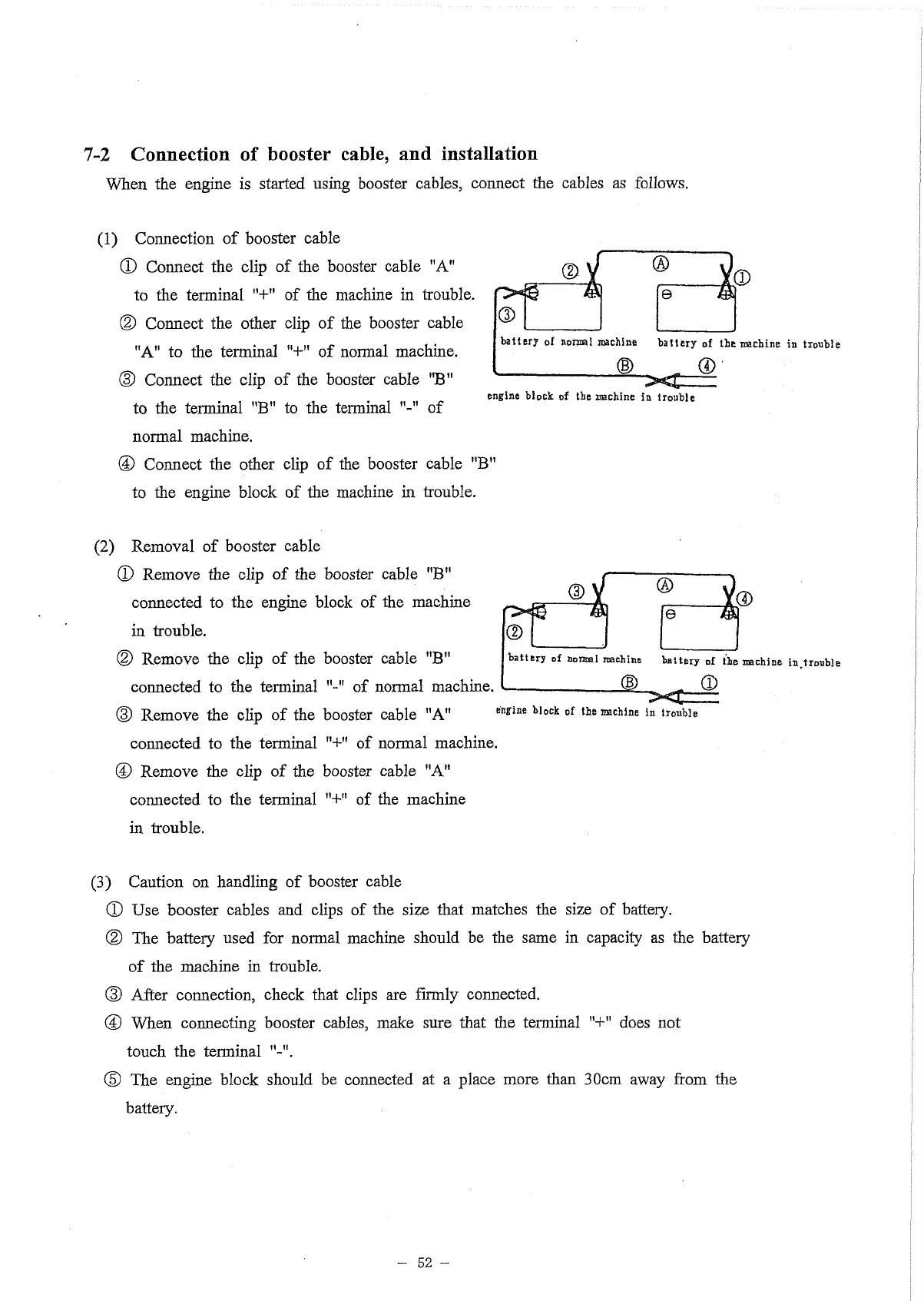 (3) Caution on handling of booster cable