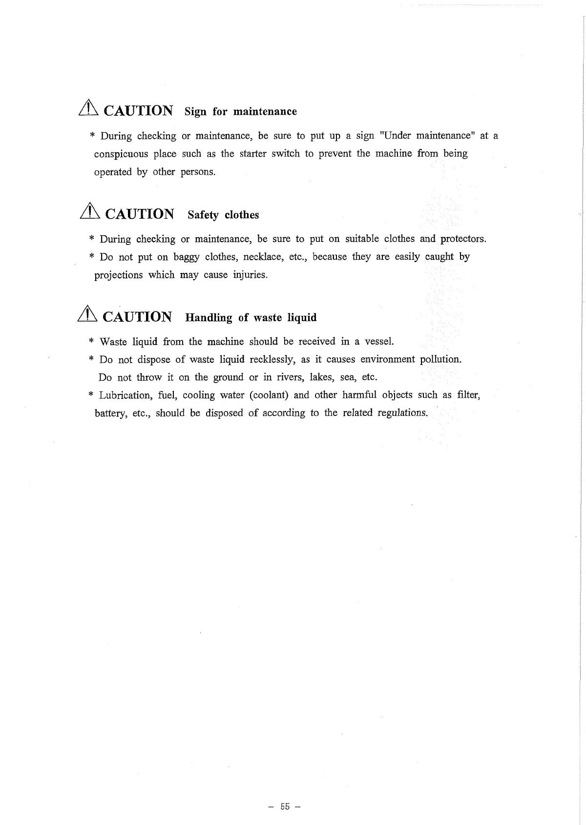 * During checking or maintenance, be sure to put on suitable clothes and protectors.