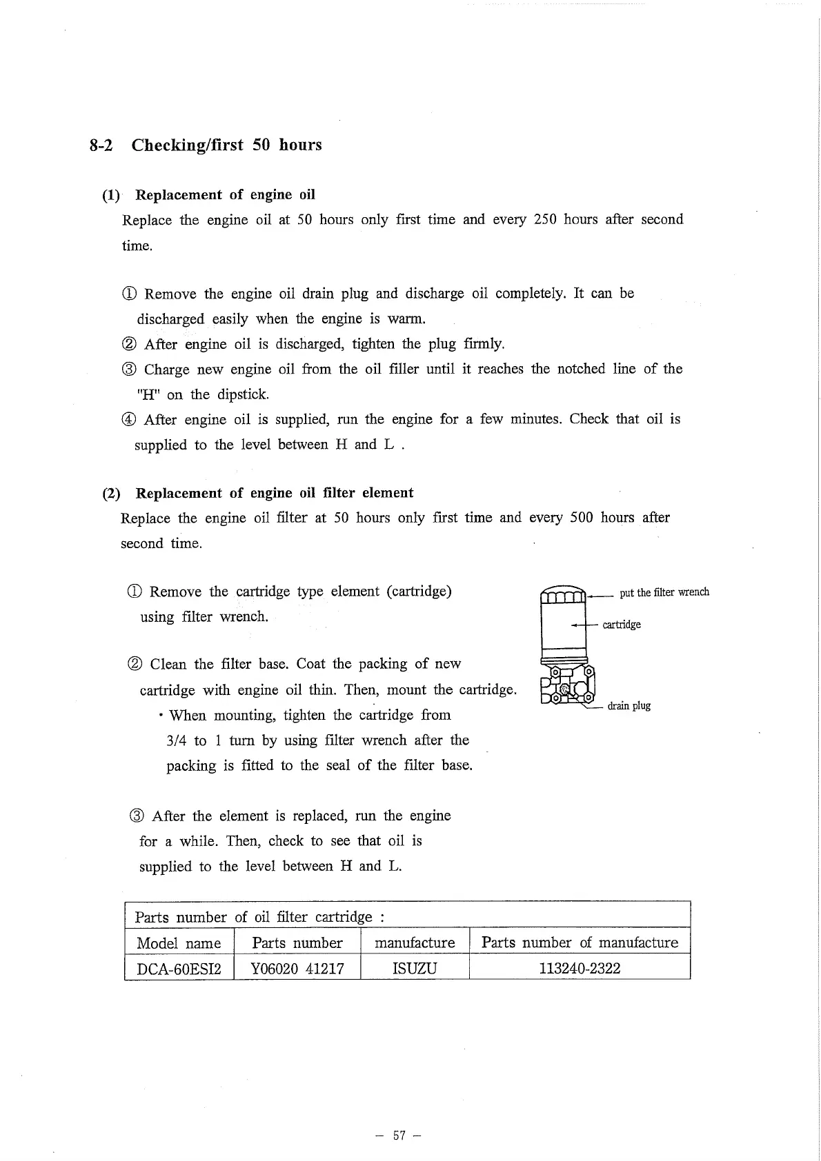 Replace the engine oil filter at 50 hours only first time and every 500 hours after