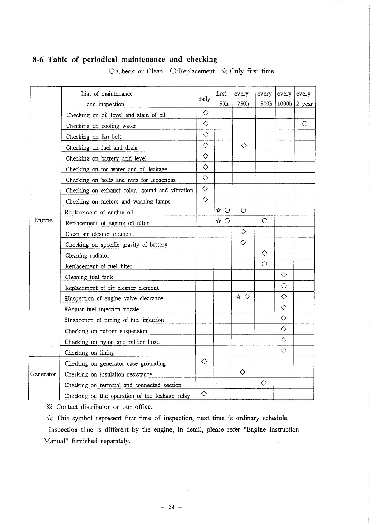 ☆ This symbol represent first time of inspection, next time is ordinary schedule.
