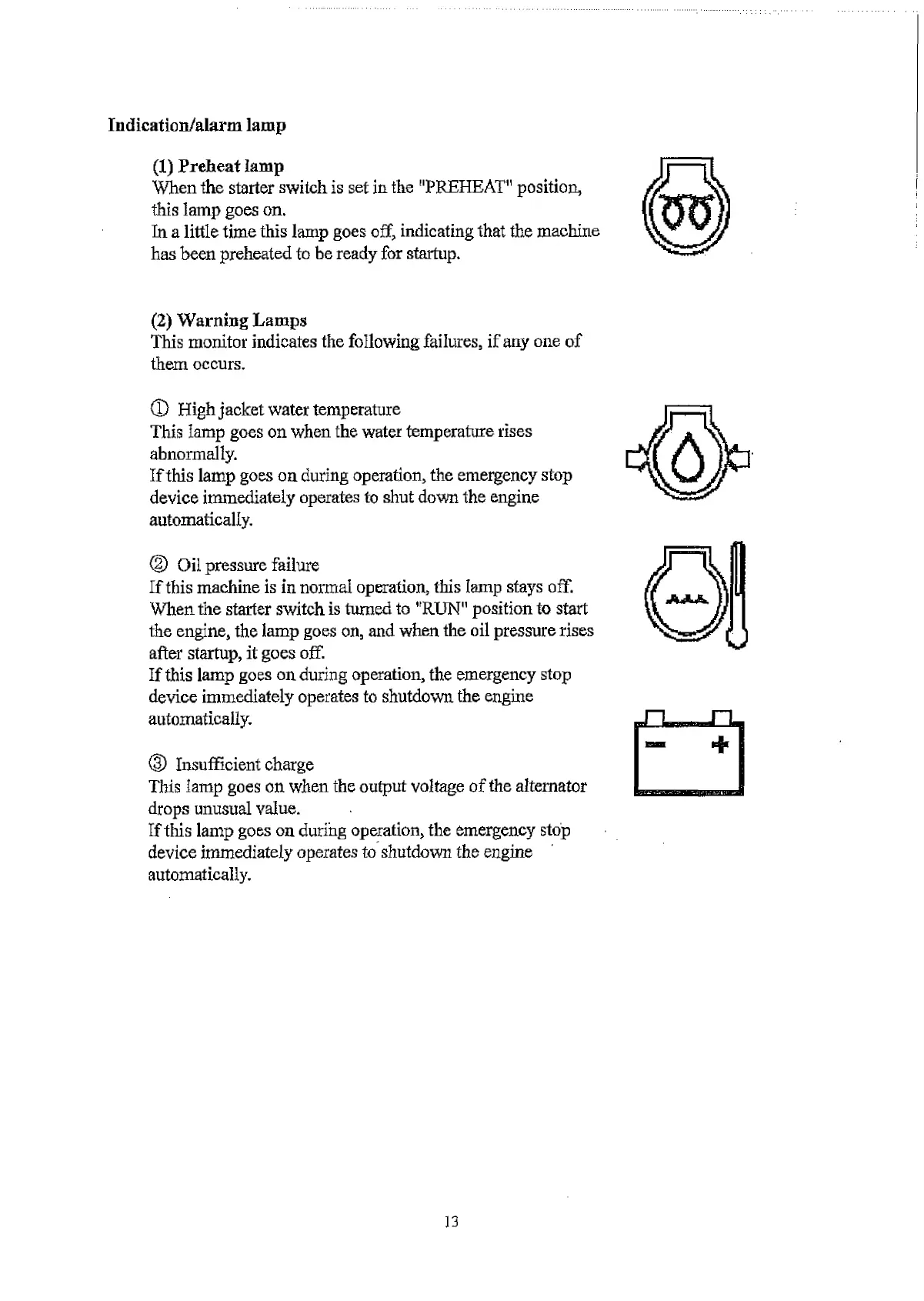 If this lamp goes on during operation, the emergency stop