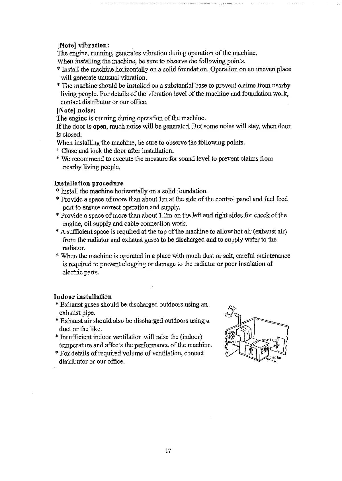 * Provide a space of more than about lm at the side of the control panel and fuel feed