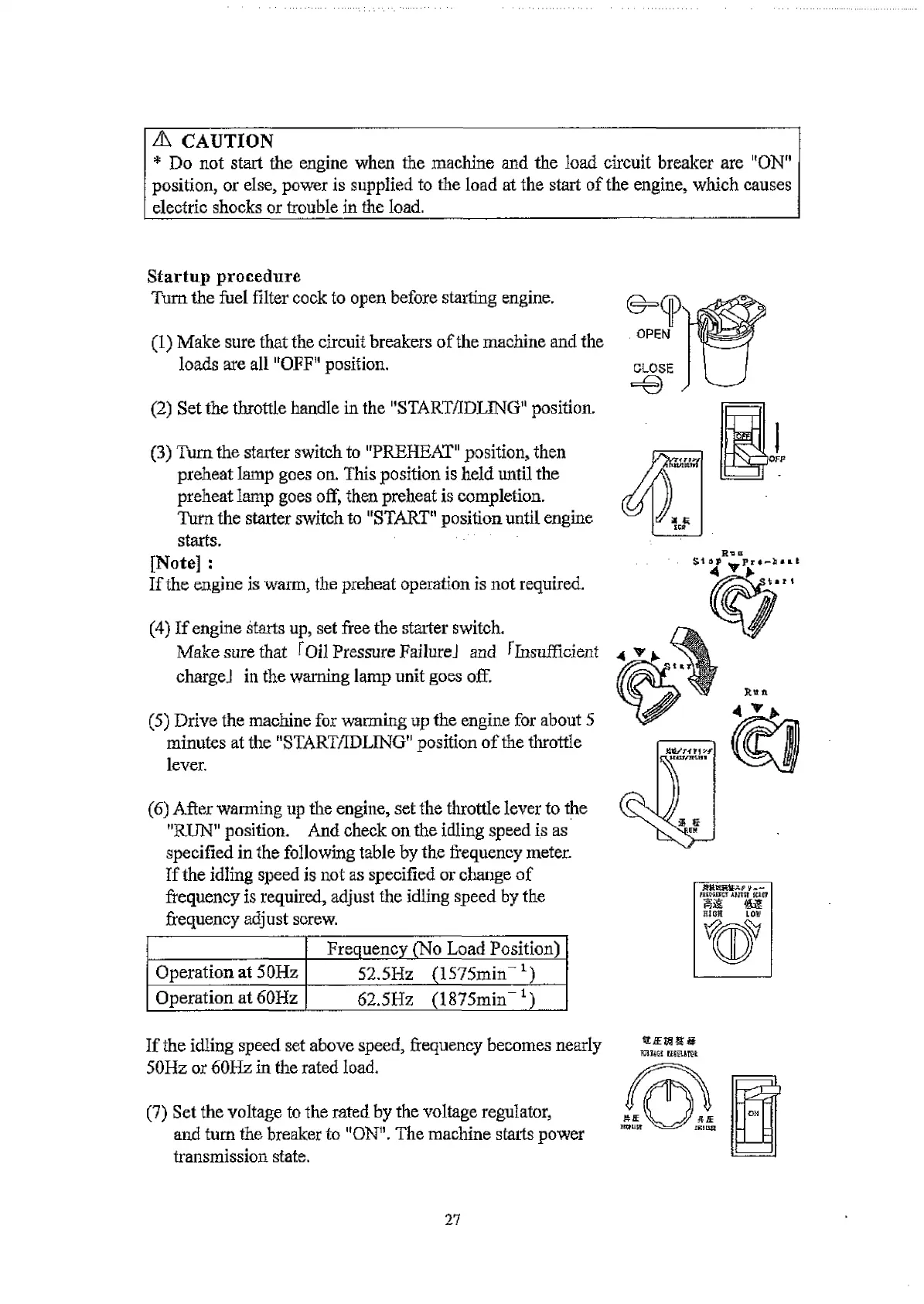 * Do not start the engine when the machine and the load circuit breaker are "ON"