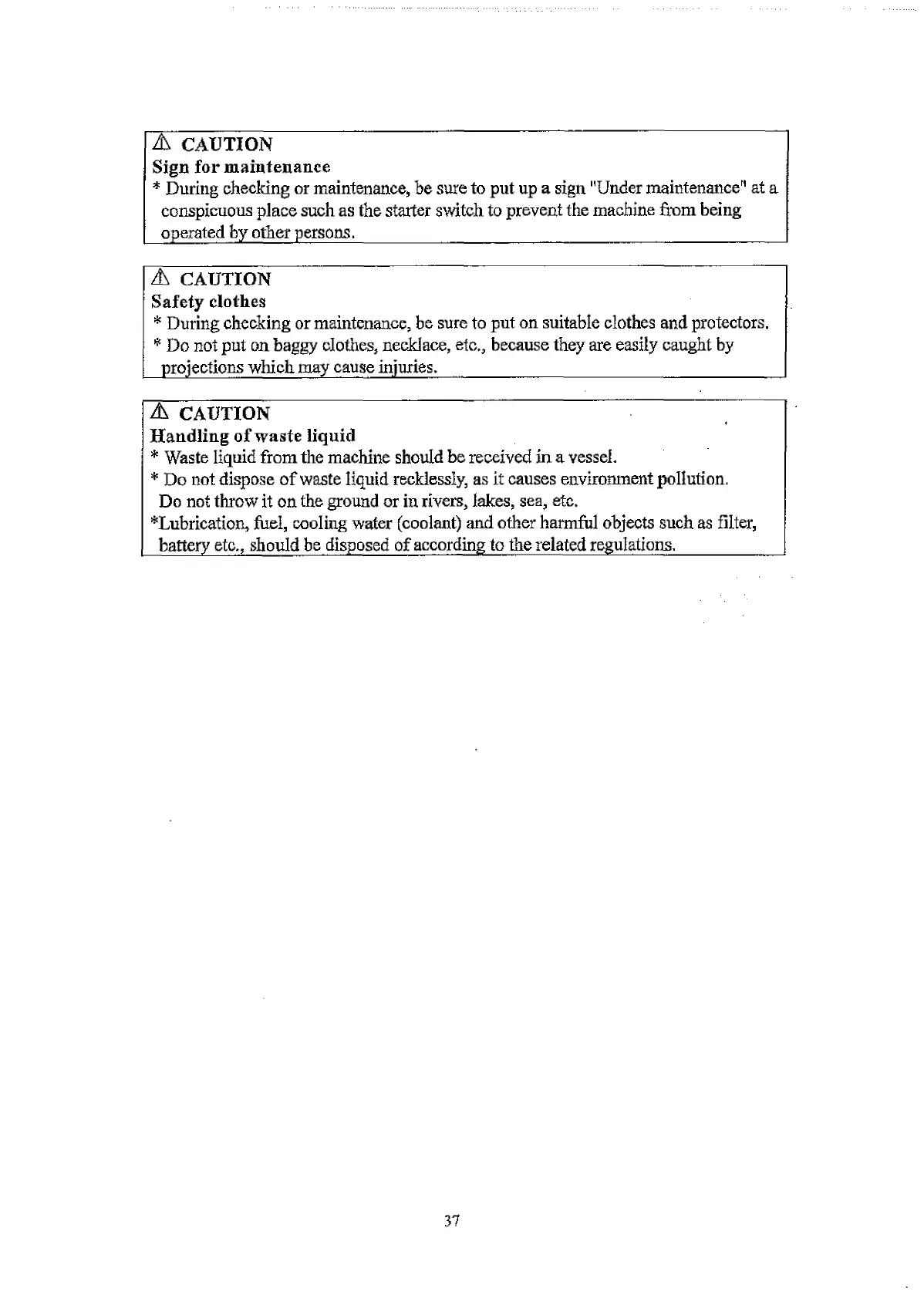 ^Lubrication, fuel, cooling water (coolant) and other harmful objects such as filter,