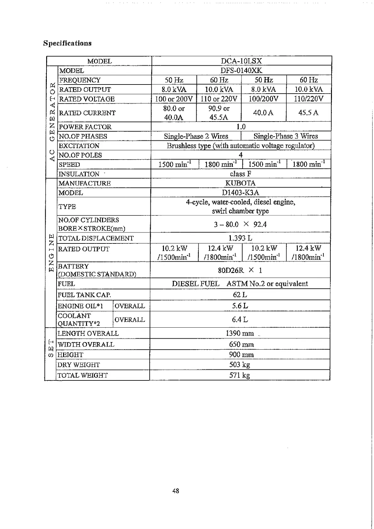RATED OUTPUT 8.0 kVA 10.0 kVA 8.0 kVA