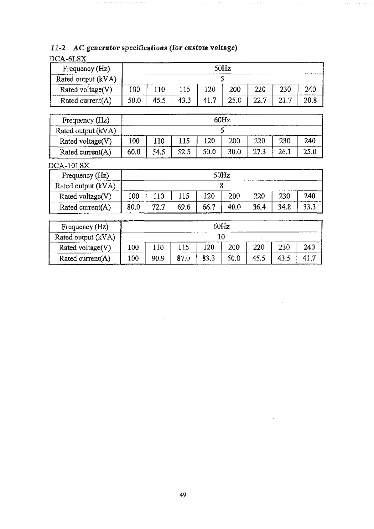 11-2 AC generator specifications (for custom voltage)