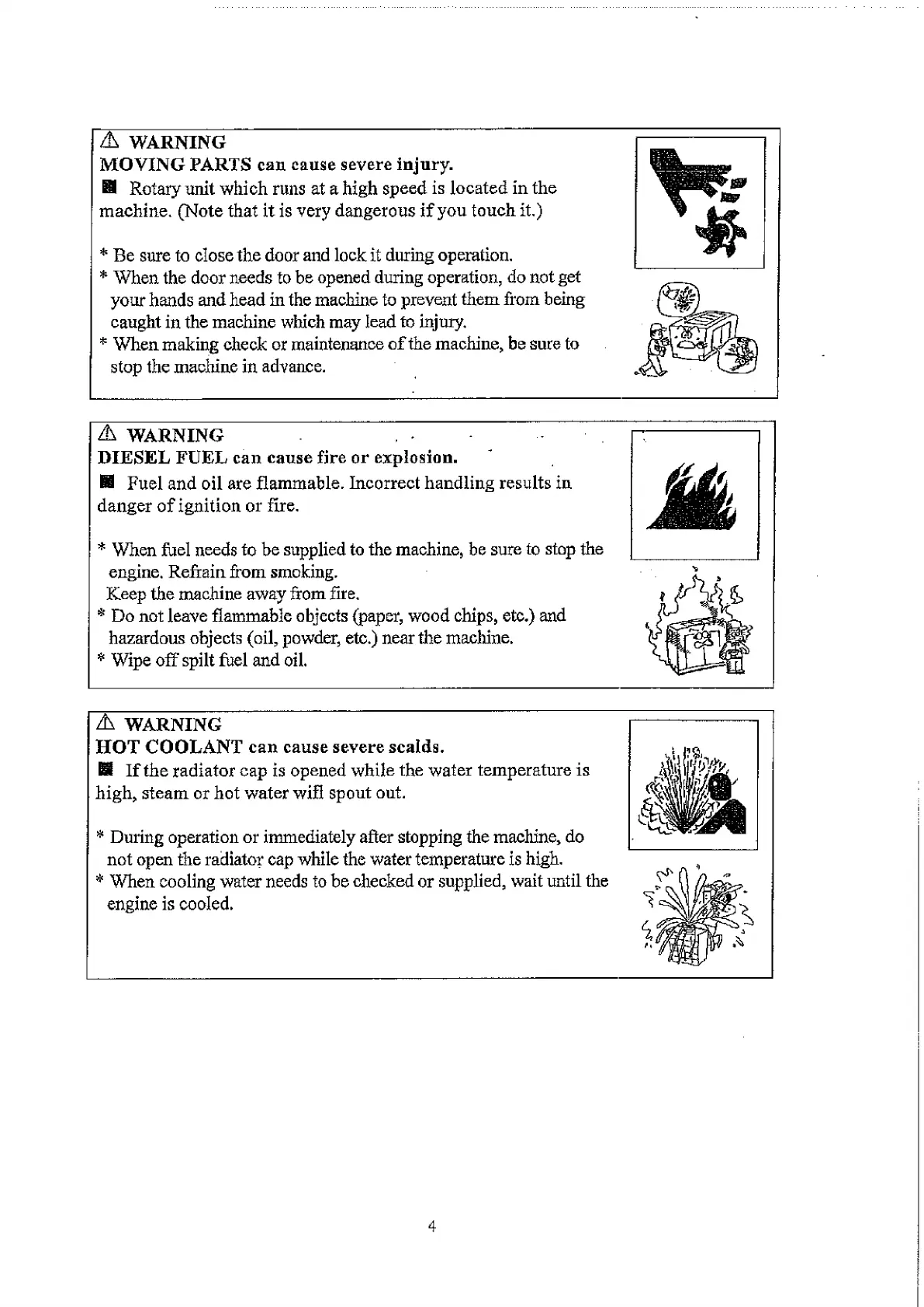 * When fuel needs to be supplied to the machine, be sure to stop the