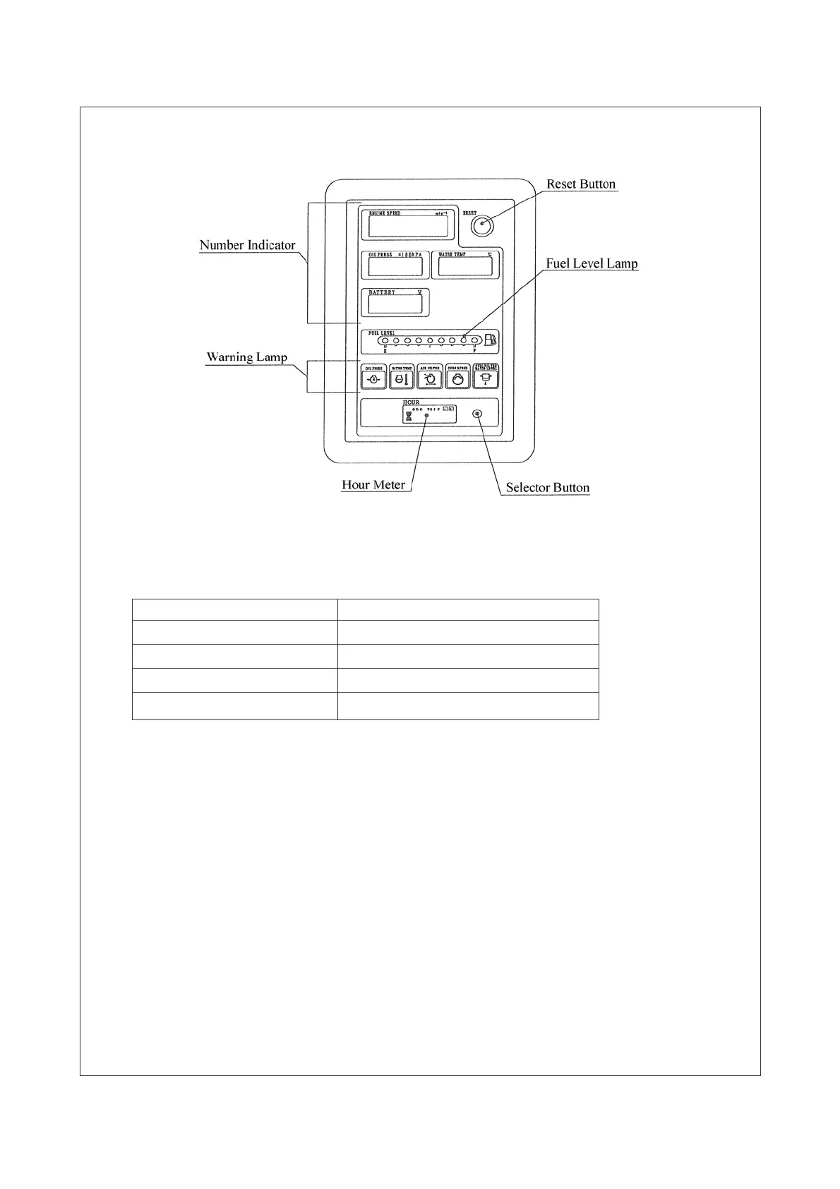 That indicates the numerical values of engine speed, engine oil pressure, run hours,