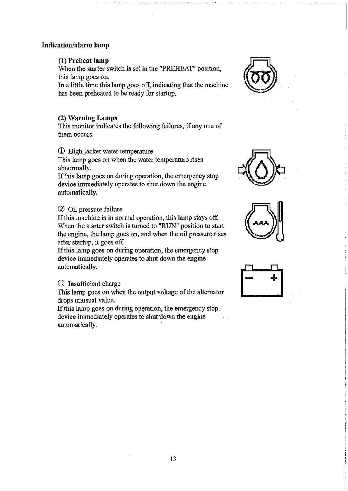 If this lamp goes on during operation, the emergency stop