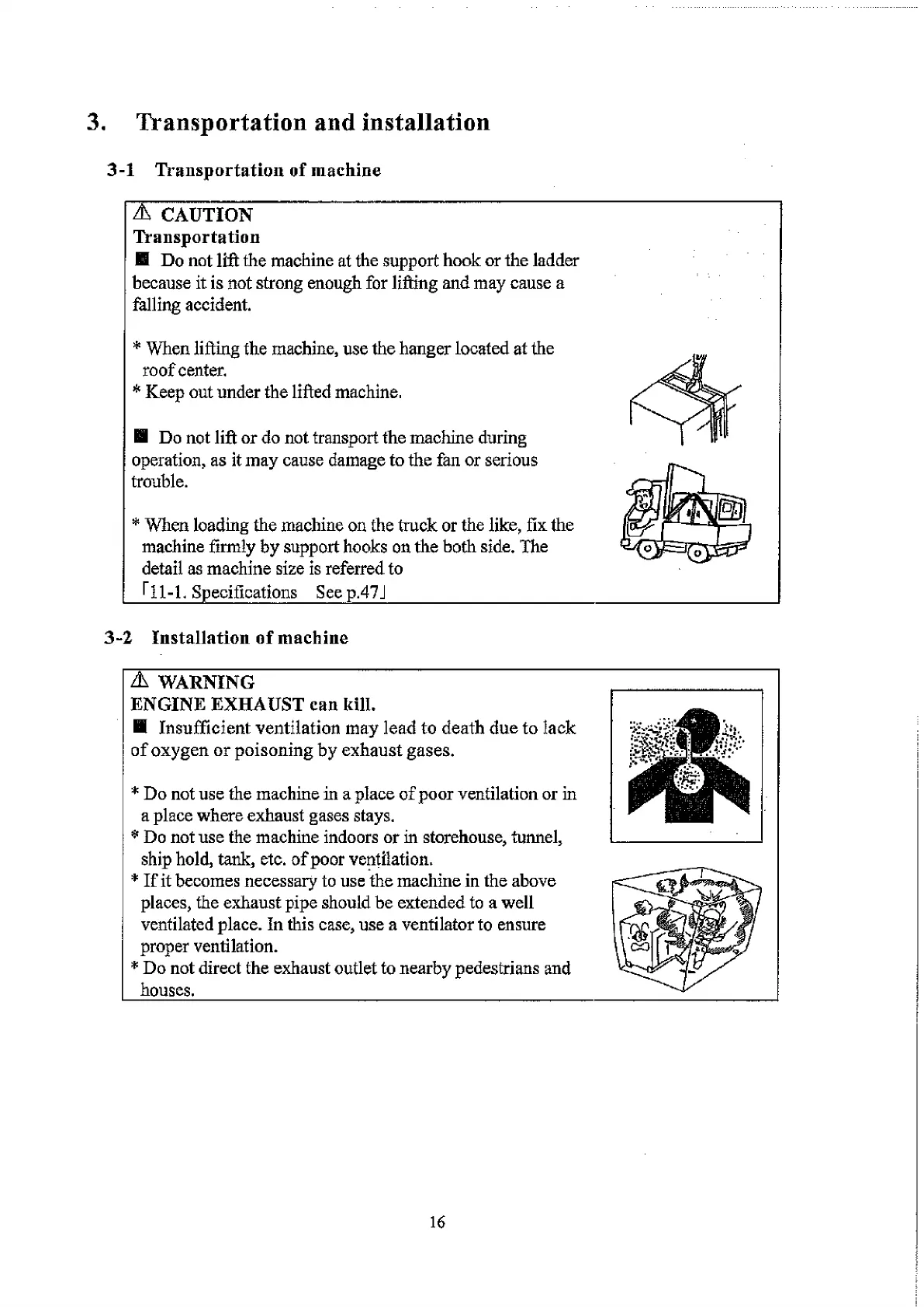 * Do not use the machine indoors or in storehouse, tunnel,