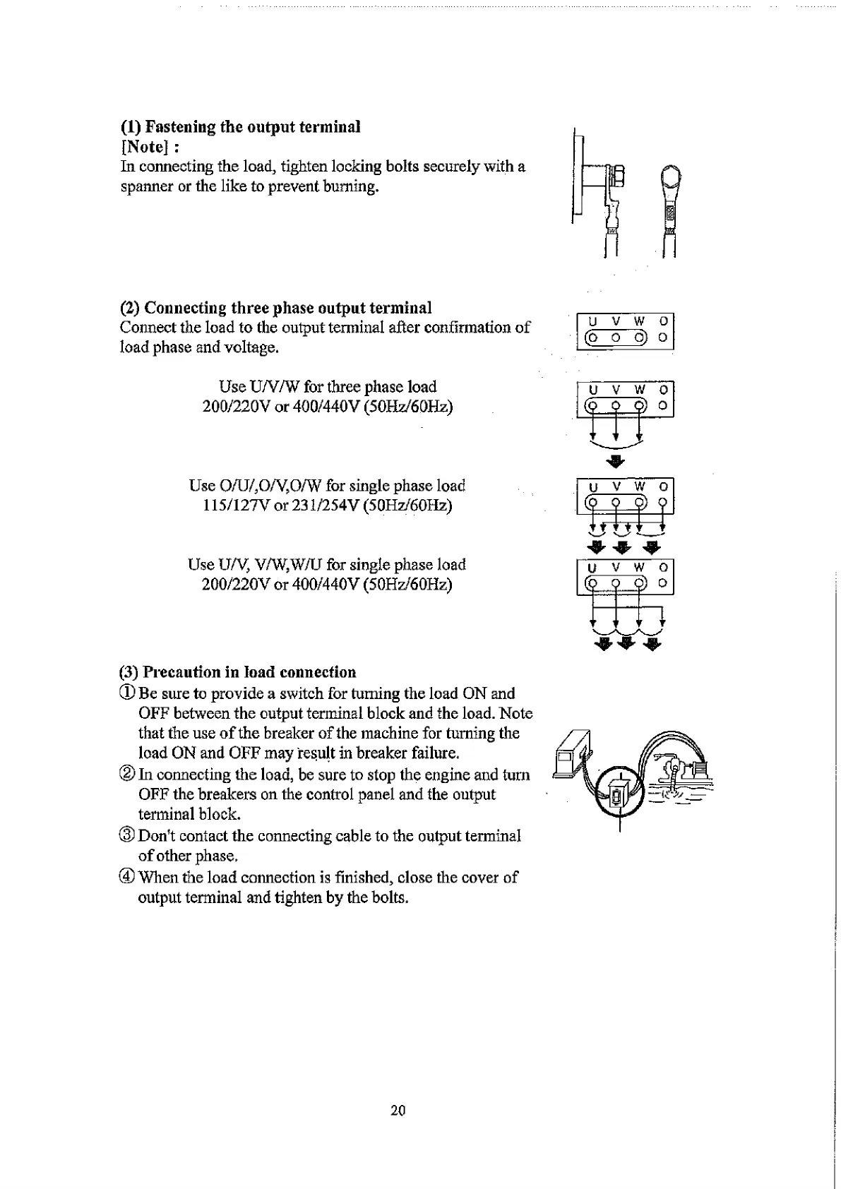 ® In connecting the load, be sure to stop the engine and turn