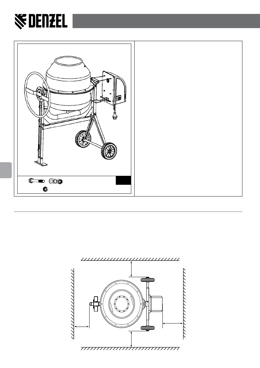При монтиране на бетоносмесителя на строителната площадка, е необходимо да поддържате минимални раз-