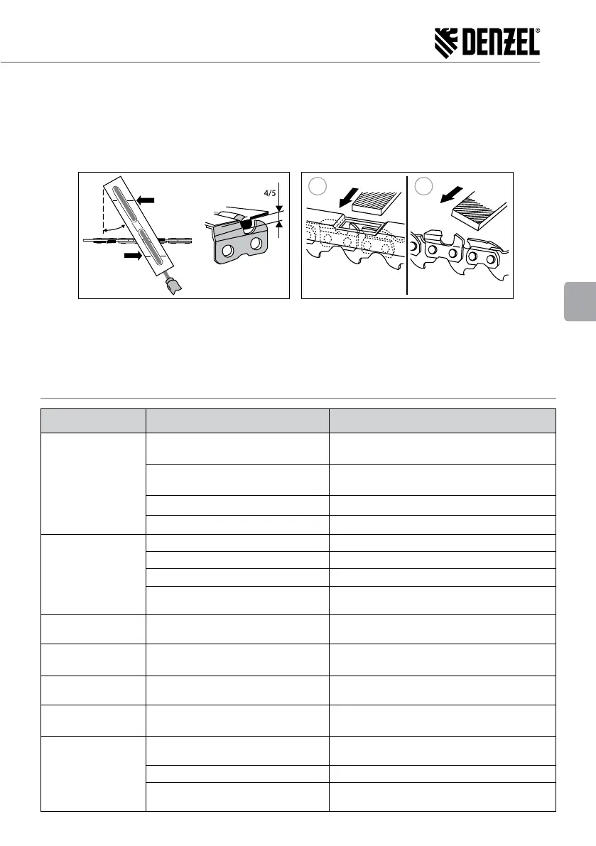 demás dientes de la cadena de la sierra. Se debe manejar la lima, como se muestra en la gura. El soporte