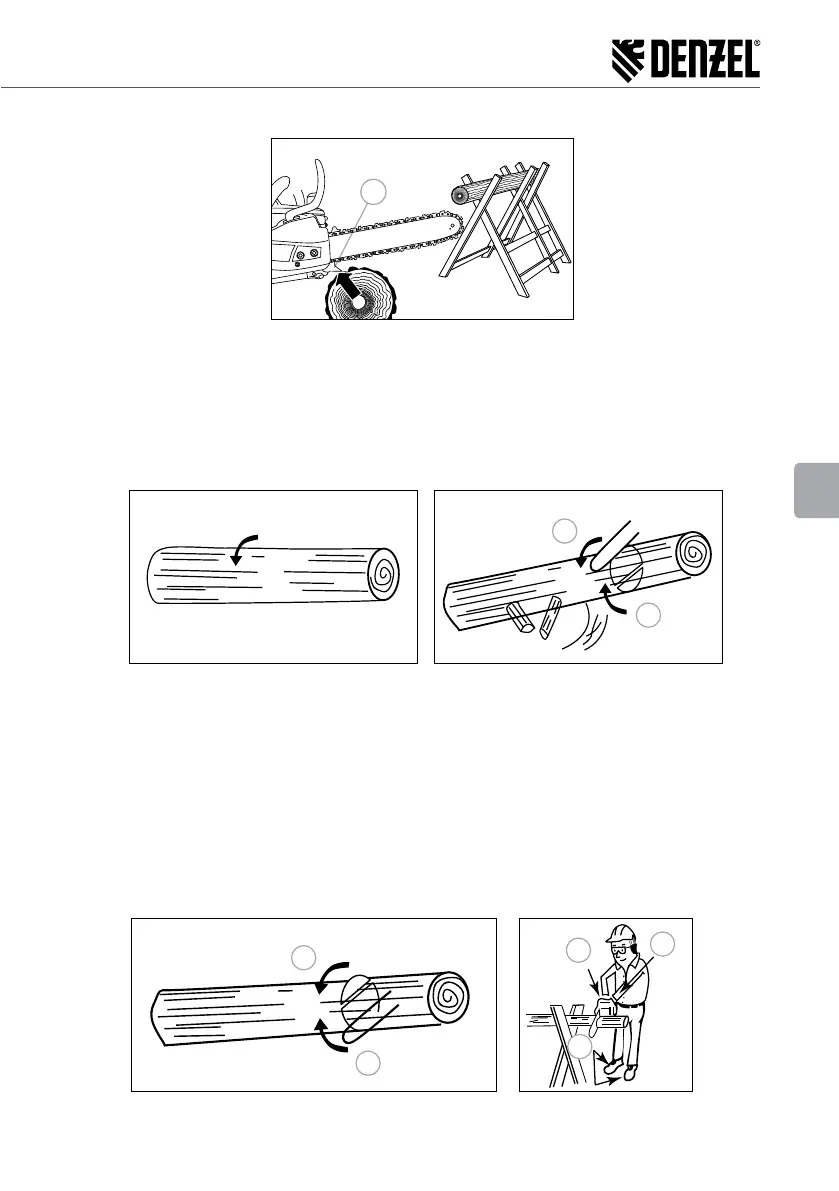 3. Nel caso in cui il tronco sia sostenuto dai supporti ad entrambe le estremità, tagliare prima il 1/3 superiore