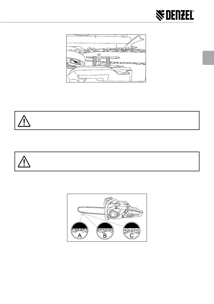 Proper chain tension is extremely important and should be checked both before starting and periodically