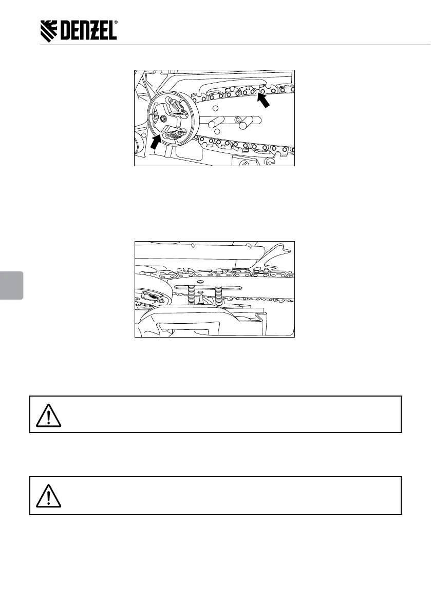 8. Повъртете веригата, за да се убедете, че зъбите на веригата са се закачили за зъбите на верижното