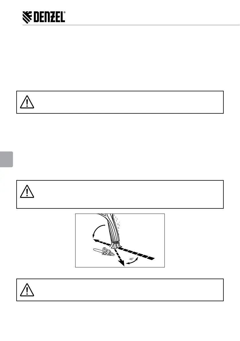 При отсичане на дървото, което расте върху склон, оператор трябва да стане по-високо