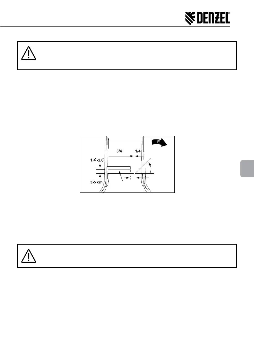 (Е). Убедете се, че подрез не влиза твърде дълоко в.дънера. Предварителен срез (С) трява да се изпълня