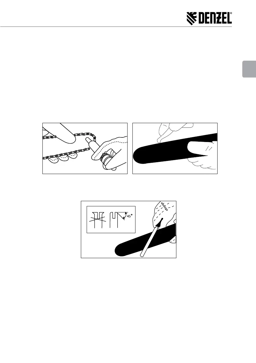 31). The sharpening angle of 30° should be the same for all saw teeth. Unequal angles cause uneven chain